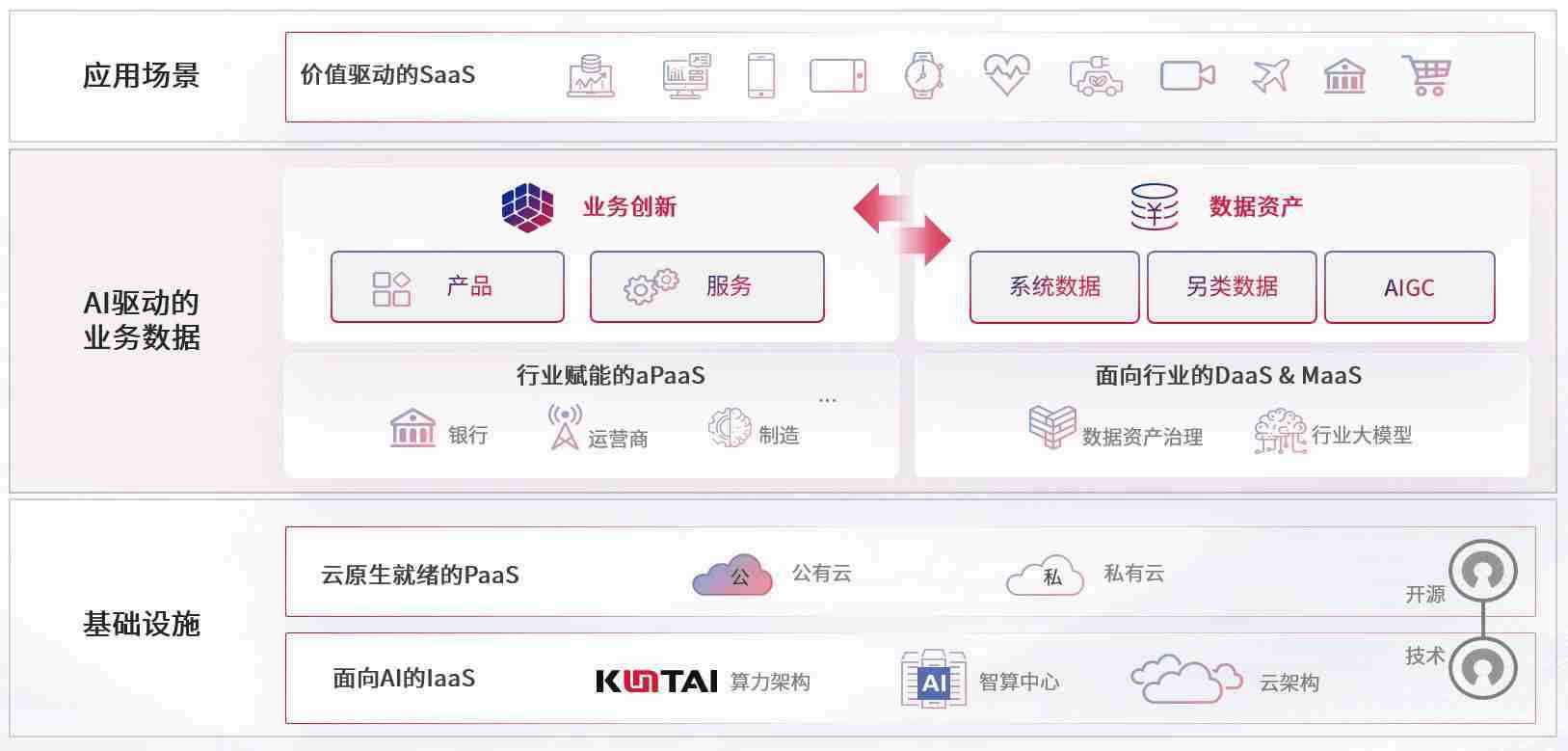 数字时代,,围绕企业数字化转型的关键要素,,,350vip8888新葡的京集团数码开创性的提出数云融合战略和技术体系框架,,着力在云原生、、、数字原生、、、、AI原生和信创产业上架构产品和服务能力,,,,为处在不同数字化转型阶段的快消零售、、、汽车、、、、金融、、、、医疗、、政企、、、、教育、、、运营商等行业客户提供泛在的敏捷IT能力和融合的数据驱动能力,,,,构建跨界融合创新的数字业务场景和新业务模式,,,助力企业级客户建立面向未来的核心能力和竞争优势,,全面推动社会的数字化、、智能化转型升级。。。。